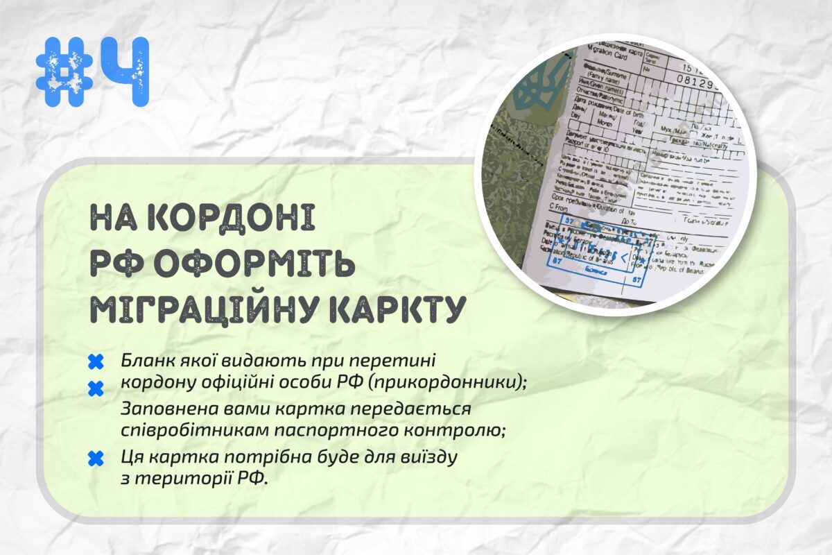 На кордоні з РФ обов’язково оформте міграційну картку. Вона знадобиться вам для подальшого виїзду в третю країну.