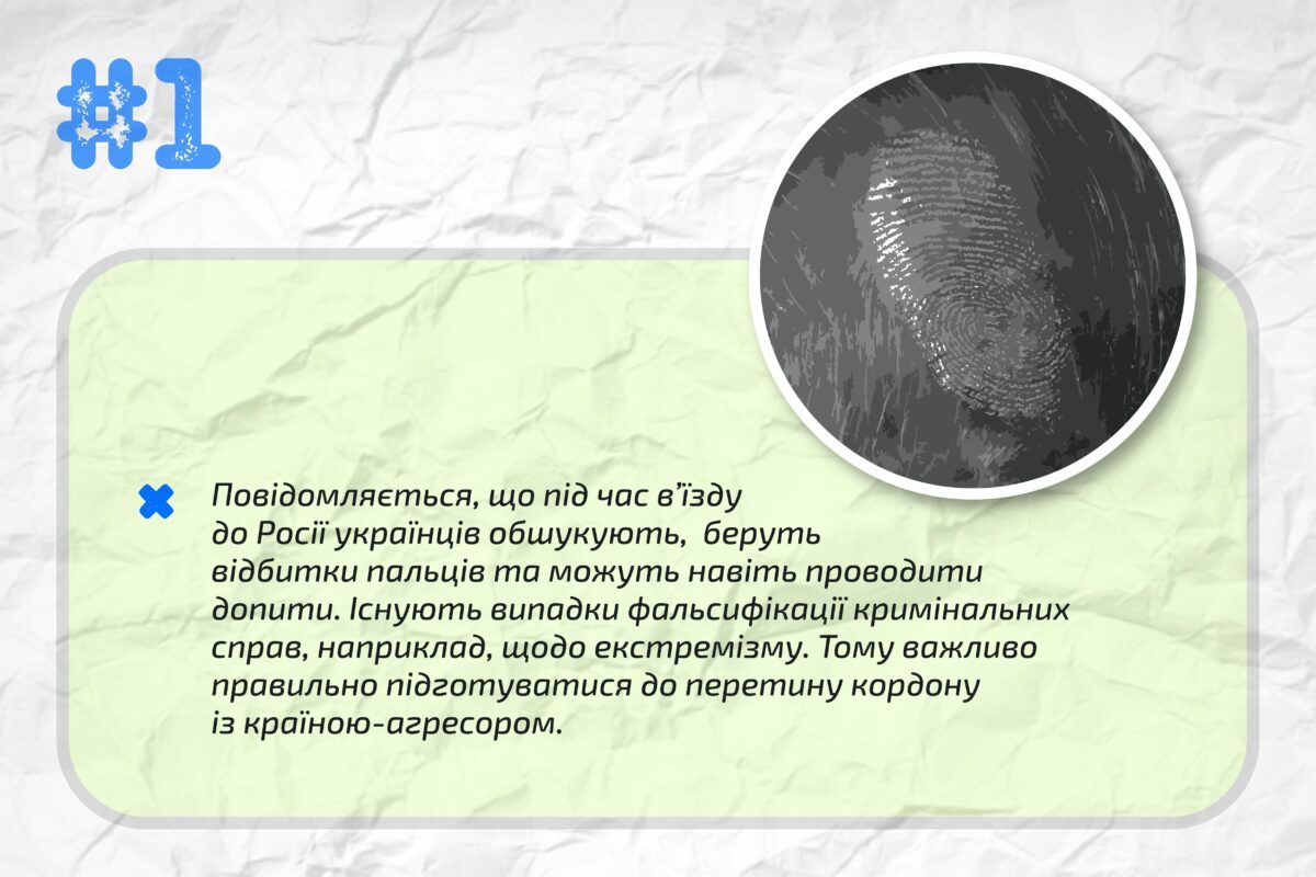 Під час перетину кордону Росії українців ретельно обшукують, перевіряють техніку, беруть відбитки пальців, можуть і допитати. Є навіть ризик сфабрикування справ, наприклад, щодо екстремізму. Тому варто зробити усе можливе, щоб уникнути підозр та звинувачень.