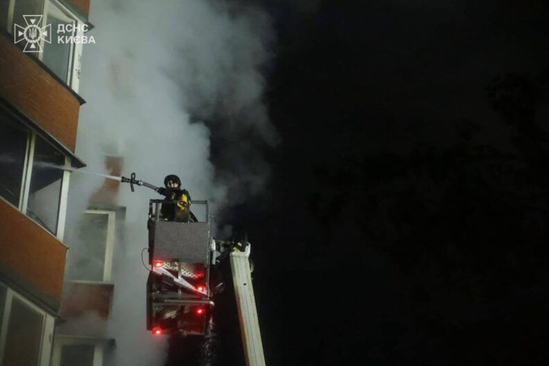 У Соломʼянському районі атака пошкодила гаражний кооператив. У Дарницькому районі загорівся третій поверх багатоквартирного будинку.