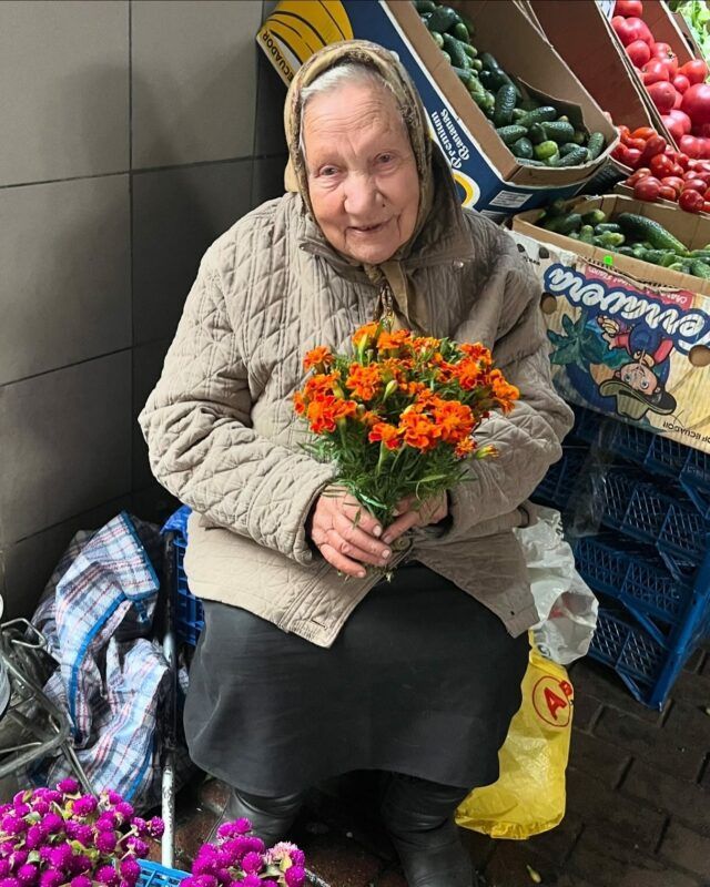 Про жінку з букетами розповіла у соцмережах Юлія — вона часто купує в пані Ольги квіти й закликала інших робити так само: