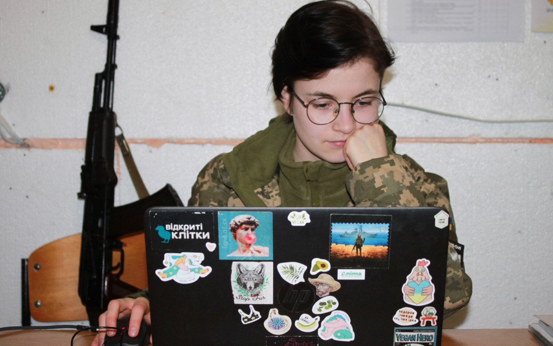 До 24 лютого дівчина мешкала з хлопцем у Львові, волонтерила та брала участь у мирних акціях. Зараз вона перебуває на Харківщині. Крім боротьби за Україну, також бореться за жіночі права.