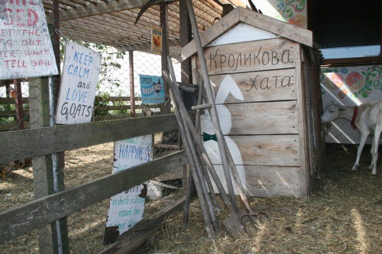 А трохи далі, на вулиці, з’являється будиночок із синьо-жовтим прапором і петриківським розписом на стінах. Це і є той самий будинок, в якому живуть рогаті мешканці — веселі й надзвичайно харизматичні кози.