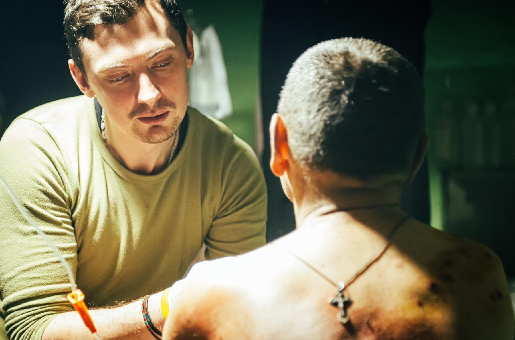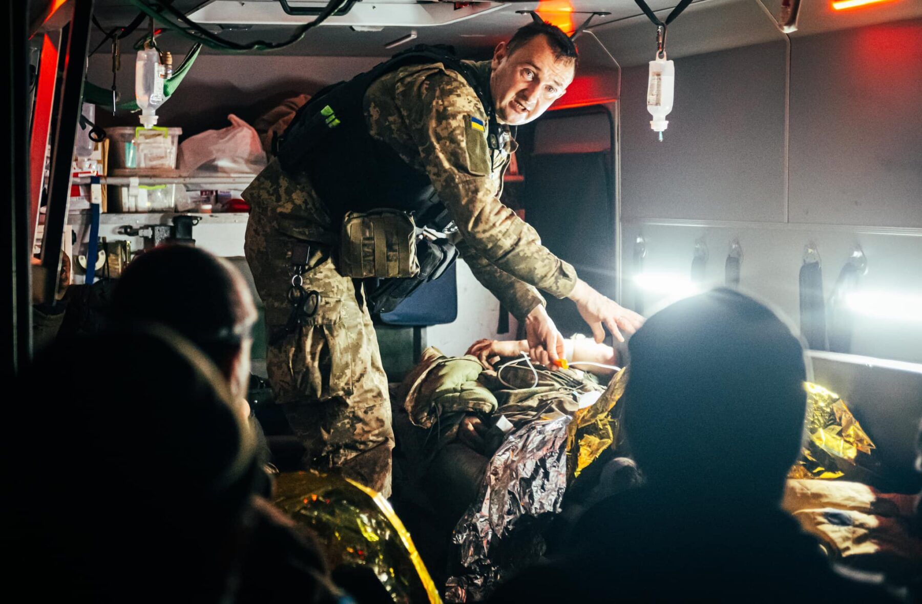 Поки закінчується робота з одними, приїжджає новий евакуаційний екіпаж з переважно легкими пораненими та одним бійцем з дірою у спині. Ураження швидко затампоновують, перев’язують, а чоловіку ставлять катетер зі знеболювальним.