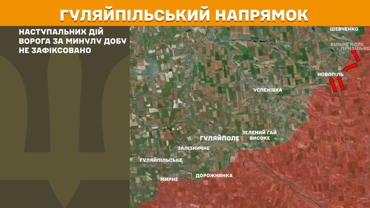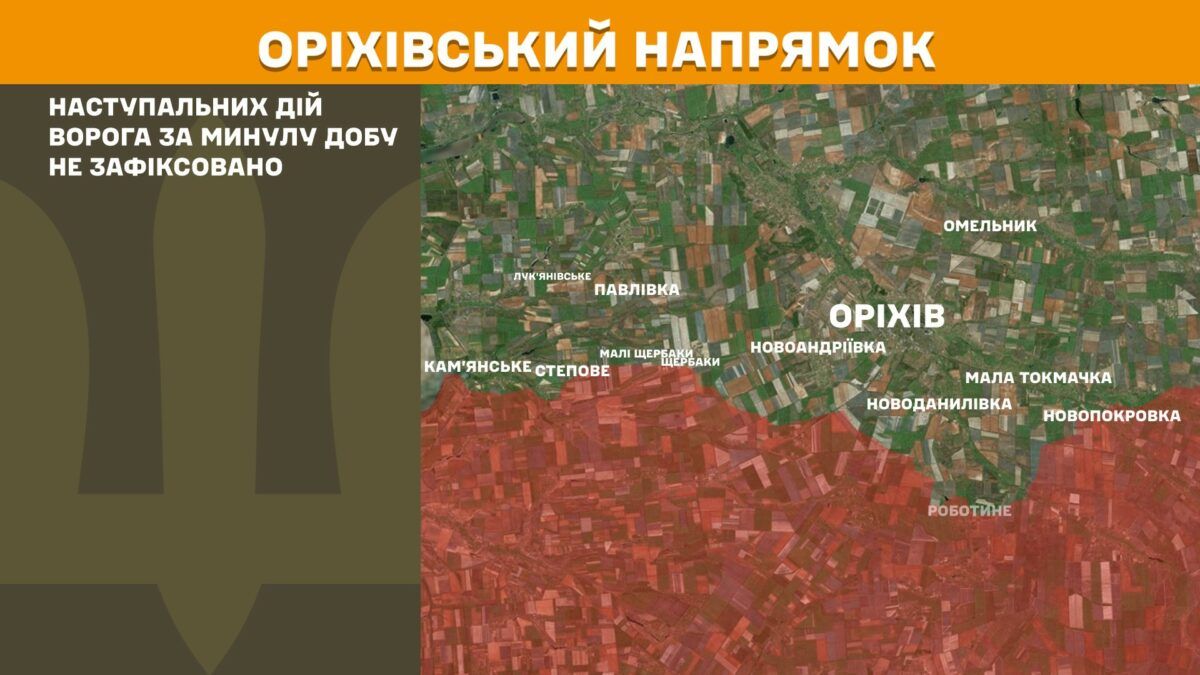 На Гуляйпольском, Ореховском и Приднепровском направлениях наступательных действий врага за прошедшие сутки не зафиксировано.
