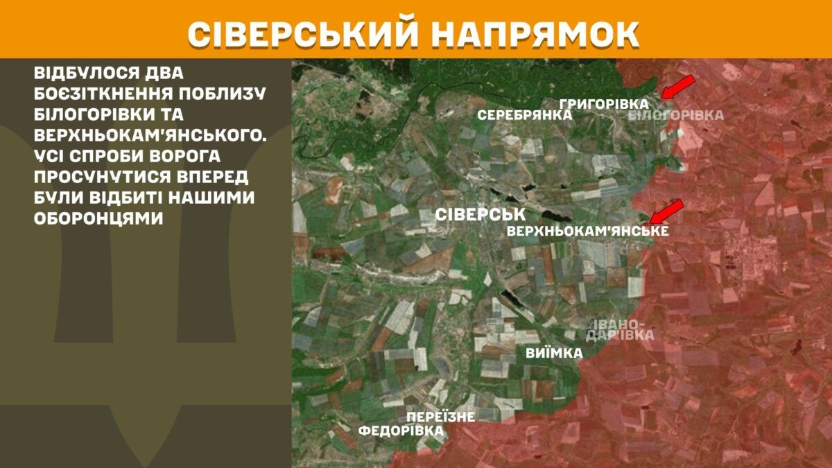 На Северском направлении произошло два боевых столкновения вблизи Белогоровки и Верхнекаменского. Все попытки врага продвинуться вперед были отражены.