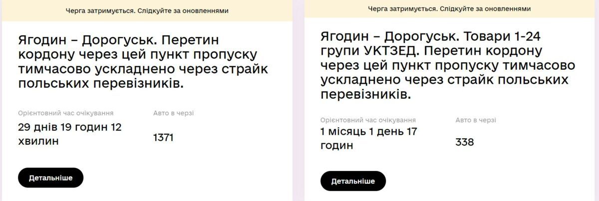 Очереди на границе с Польшей по состоянию на 23 ноября