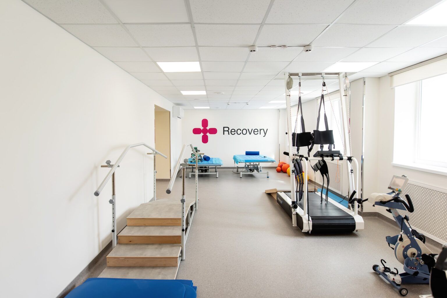Среди инновационных решений, уже имеющихся в RECOVERY — использование тренажеров с виртуальной реальностью, помогающих восстановлению различных функций тела, а также пространство, полностью приспособленное для реабилитации.