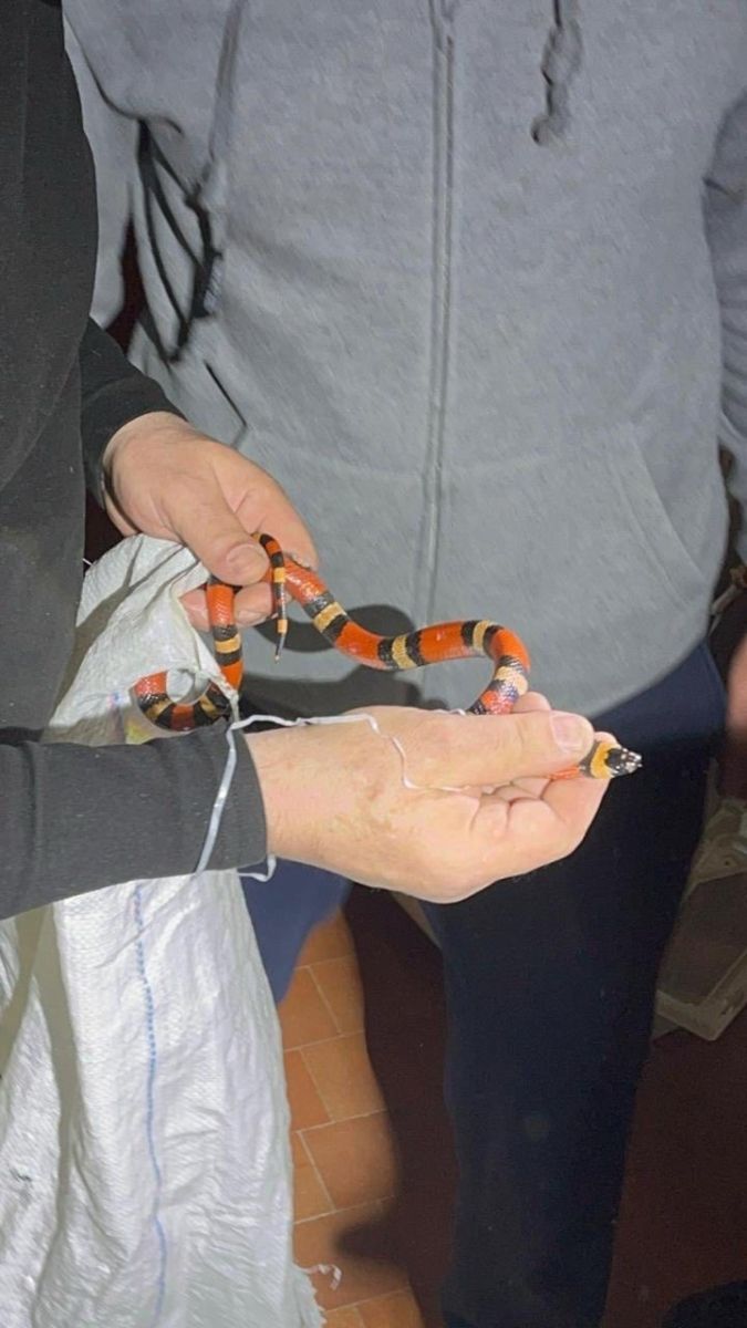Как выяснили эксперты после успешного извлечения животного, находкой оказалась гондурасская королевская змея. Это неядовитый вид, который пользуется большой популярностью среди любителей домашних террариумов благодаря своему яркому окрасу и спокойному нраву.