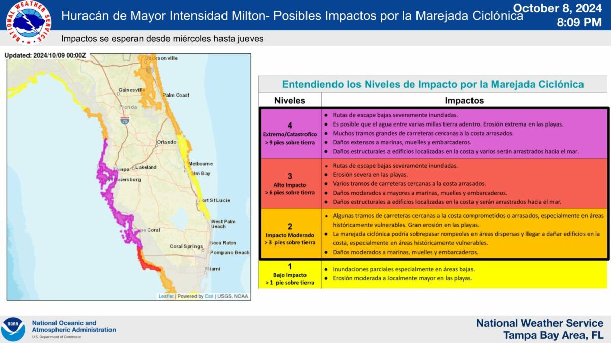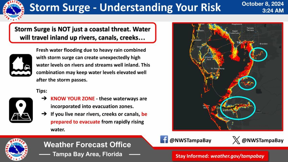 Также Джейн Кастор издала распоряжение об объявлении чрезвычайного положения из-за урагана Милтон. Округ Хиллсборо издал приказы об обязательной эвакуации для зон A и B, а также всех живущих в мобильных домах.