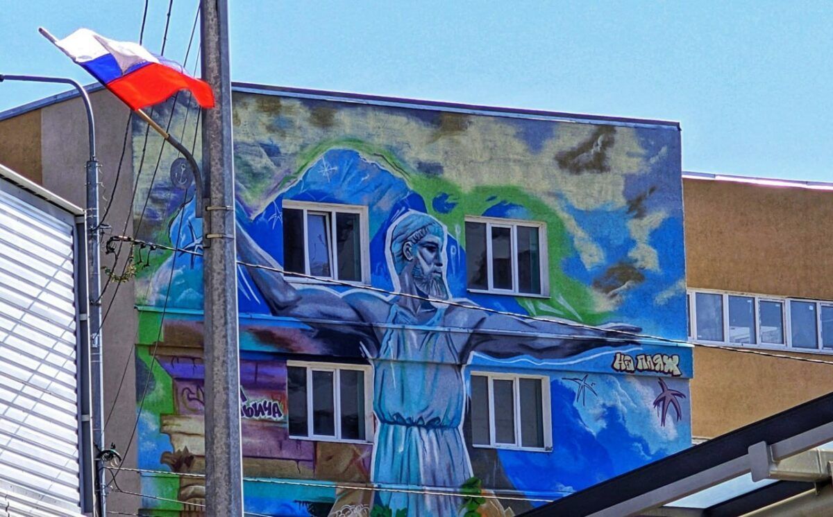 Город зарисовывают муралами с русскими флагами, пропагандой “дружбы” с городами России и так называемыми героями СВО.