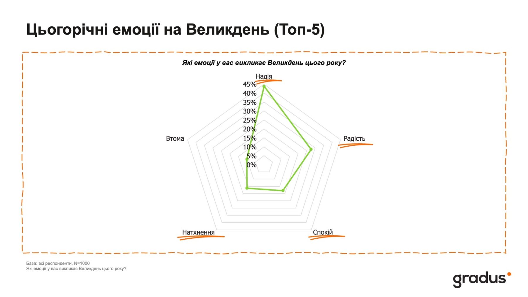 В 2026 году Пасха сопровождается сложным набором чувств. Хотя люди испытывают усталость и напряженность, доминирующими эмоциями являются надежда (44%), радость (28%) и спокойствие (18%).