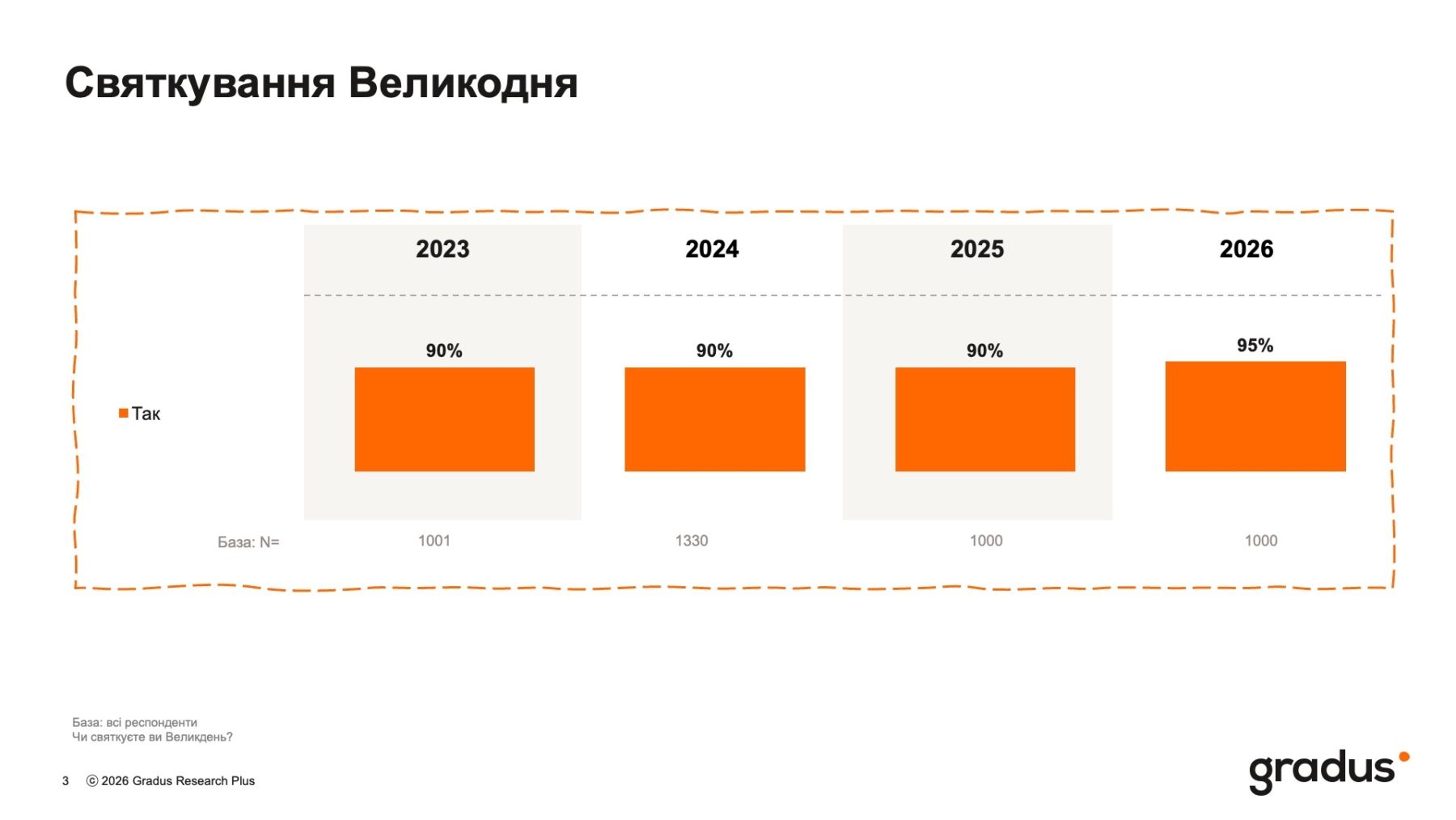 Согласно результатам свежего исследования компании Gradus, проведенного в апреле 2026 года, Пасха в Украине окончательно трансформировалась из религиозного события в фундаментальный элемент национальной и культурной идентичности. Несмотря на вызовы войны, праздник объединяет рекордное количество людей, предоставляя им необходимый эмоциональный ресурс и надежду.