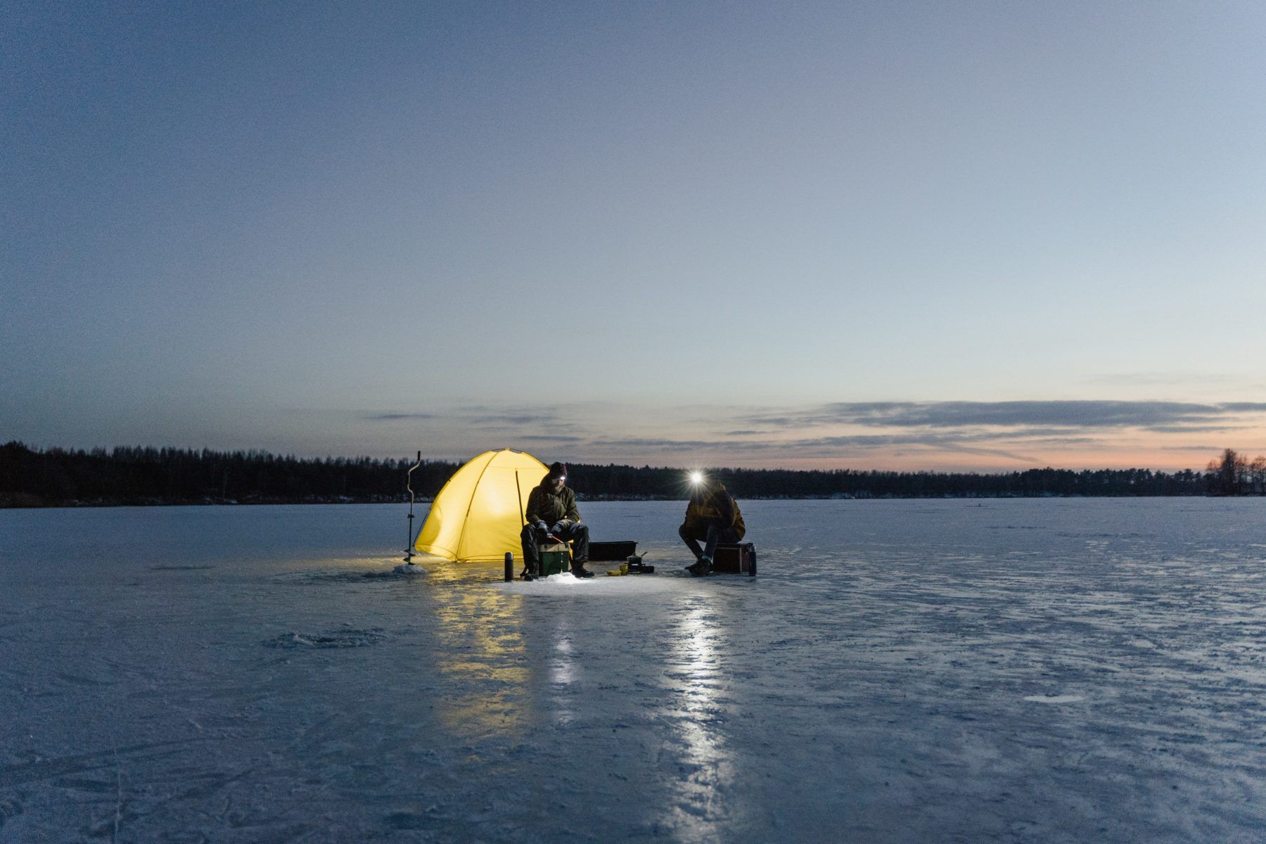 Ориентируйся на цвет льда — чем он темнее, тем крепче. А значит можно безопасно выходить на зимнюю рыбалку. Однако избегай сильного снегопада и ярких солнечных часов.