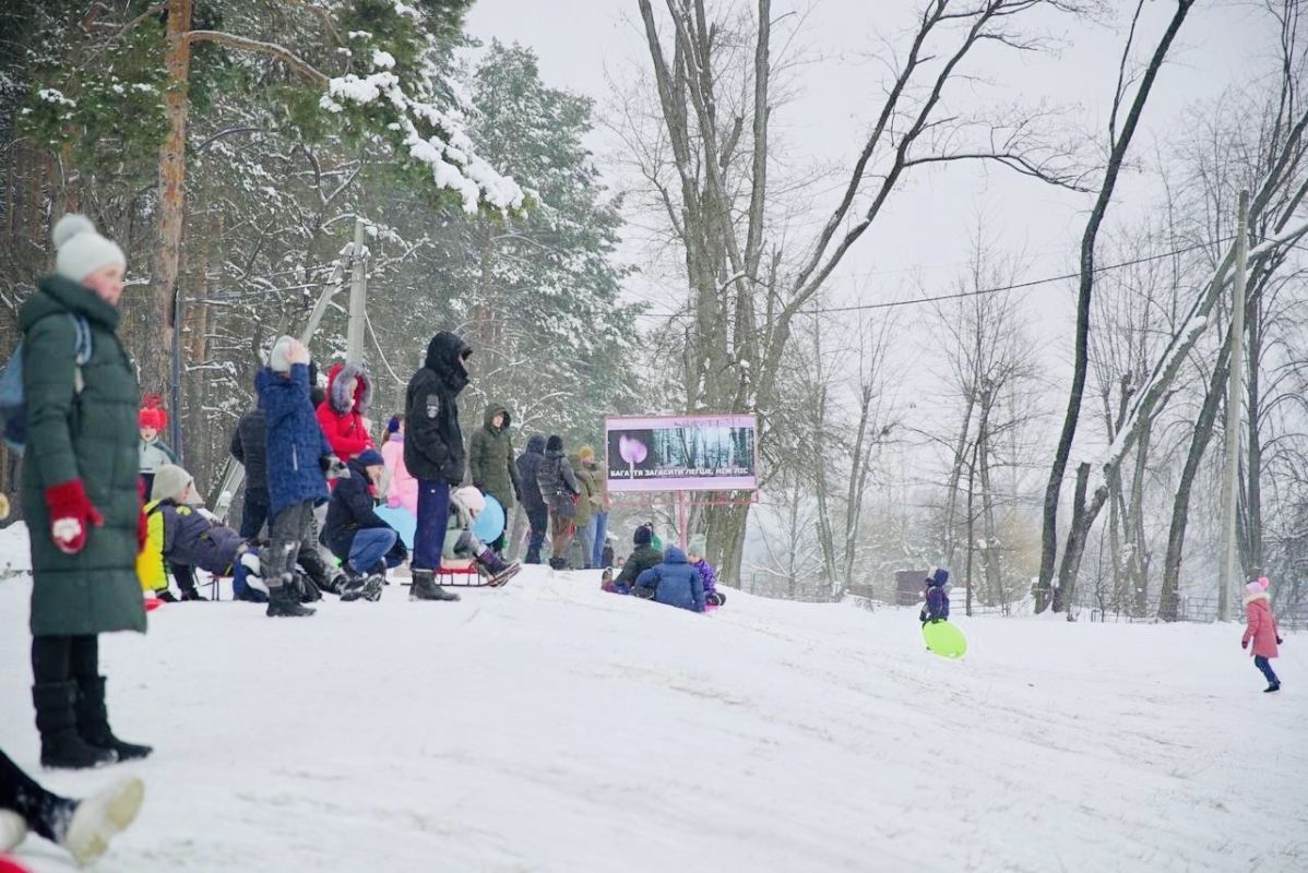 Финальная точка нашего маршрута — Гидропарк. Это огромный сосновый лес прямо на берегу реки. Зимой здесь царит особенная тишина: можно услышать, как снег падает на хвою. Но житомиряни не привыкли просто молчать — они превратили замерзшую реку в главное развлечение.