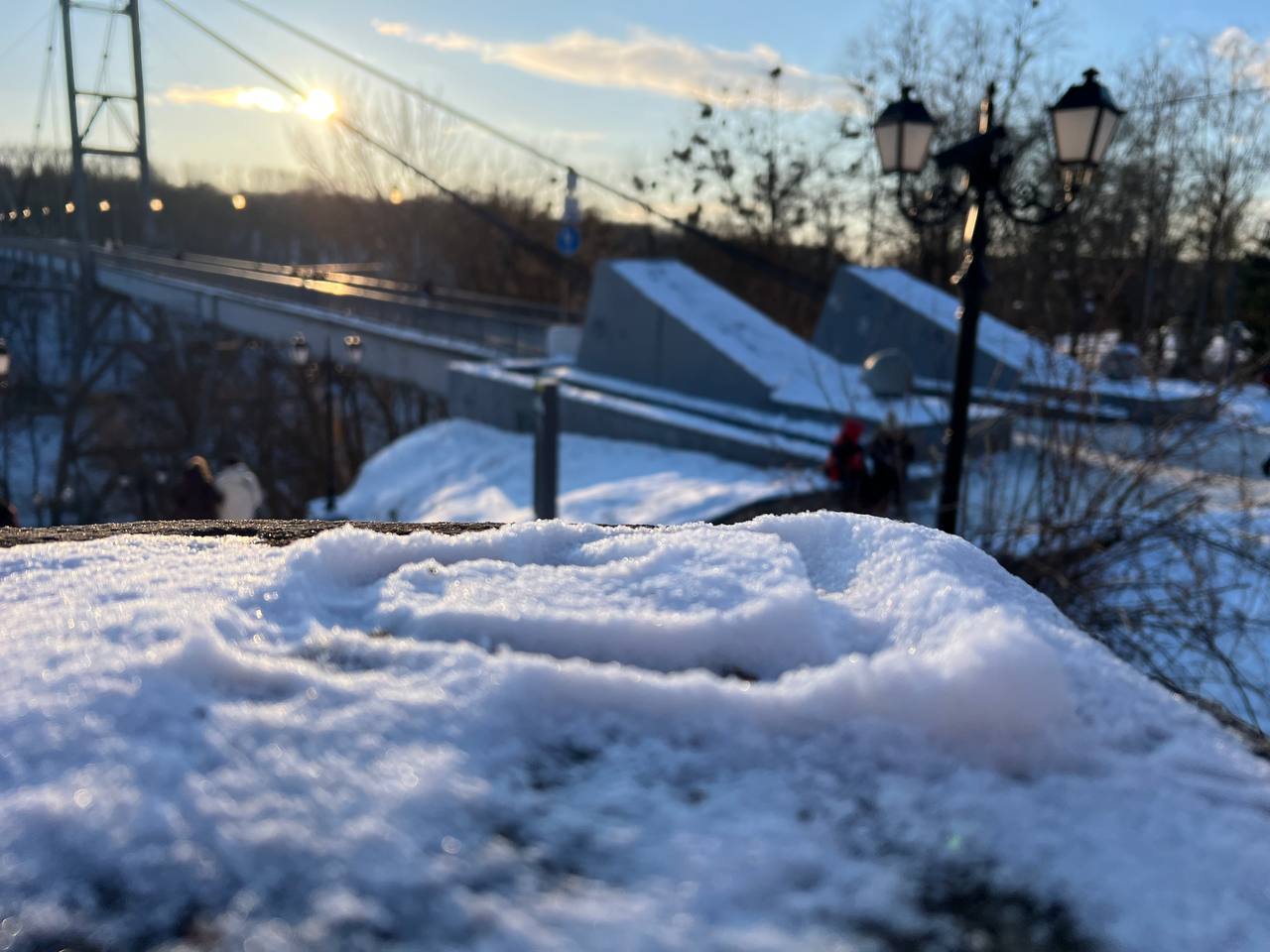 Парк Барона Шодуара в Житомире зимой выглядит как застывшая история. Можно походить по аллеям и насладиться зимними пейзажами, но твоя главная цель — подвесной мост.