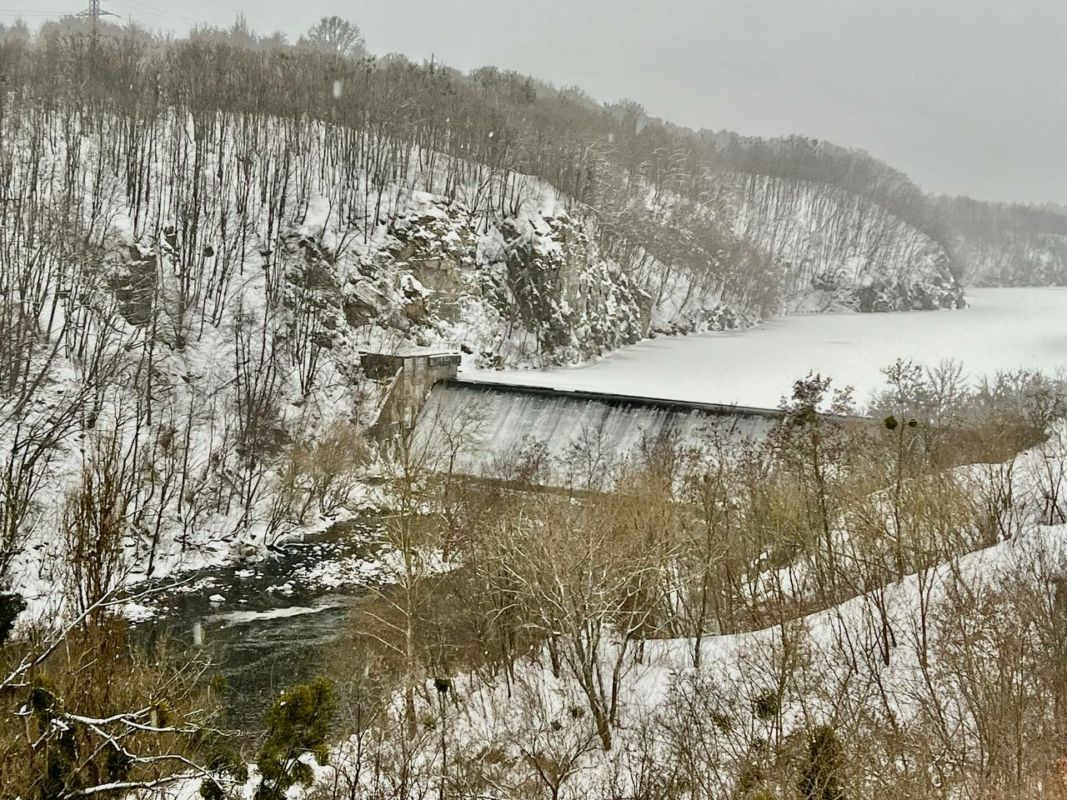 Но оставим на миг историю, ведь настоящее сокровище здесь — это панорама, от которой перехватывает дыхание. Если отойти от монумента и решиться на спуск вниз, ты окажешься в самом сердце зимней сказки: с одной стороны над пропастью каньона величественно застыл подвесной мост, а с другой — доносится мощный грохот житомирского водопада.
