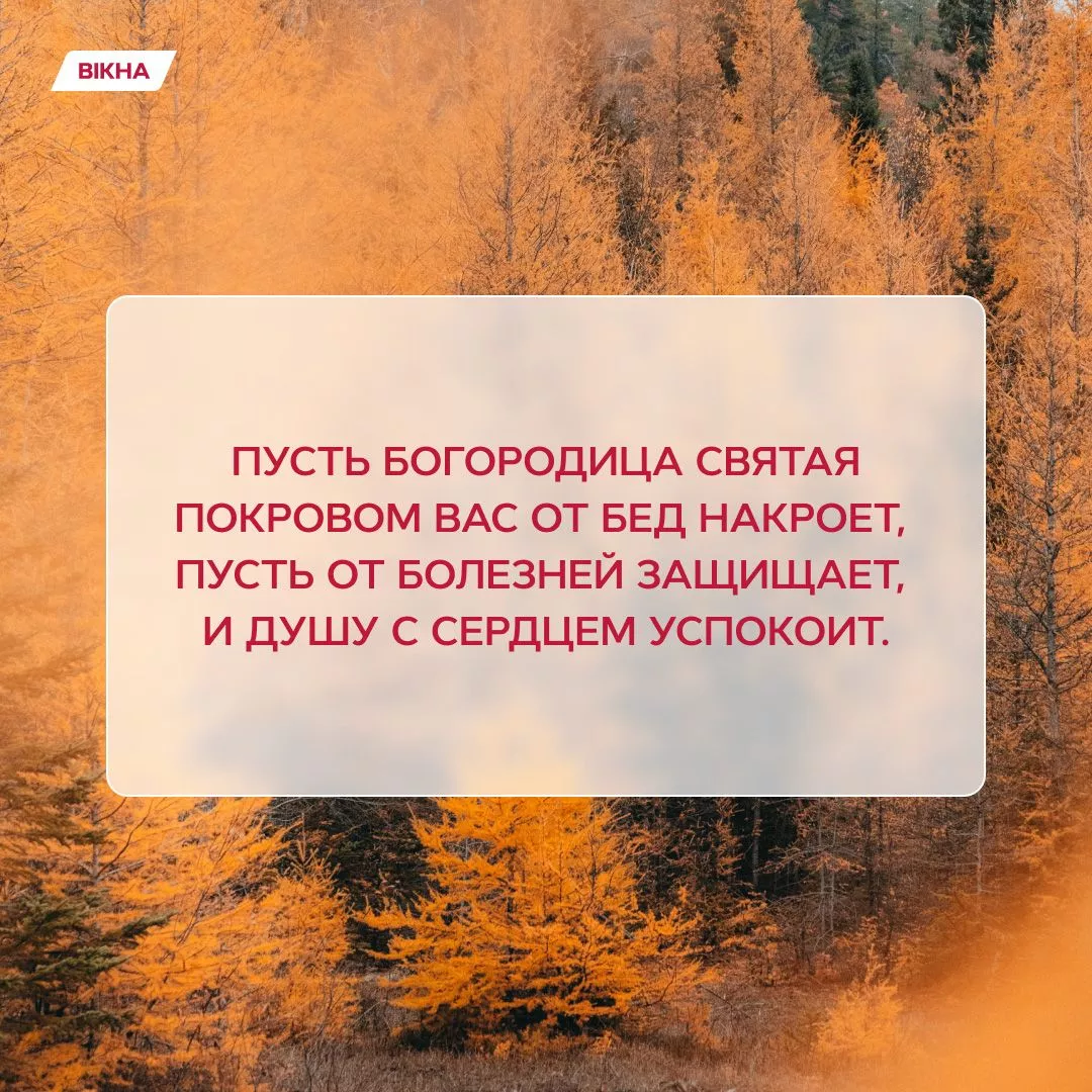 От всех невзгод укрывайся под Покровом Богородицы! Желаю тебе больше отменного здоровья, веры крепкой, спокойных дней и мира!