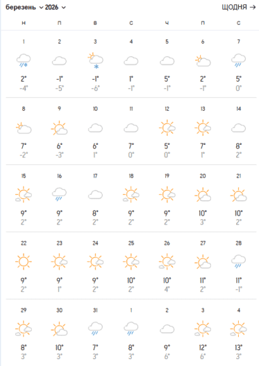 Погода в Днепре в марте 2026: будет ли потепление в течение месяца