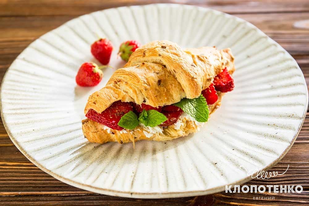 А на десерт к чаю или кофе предлагаем приготовить роскошный десерт — круассан с клубникой и маскарпоне. Нежность сыра, сладость свежей выпечки и кисловатость клубники заставит тебя забыть о тревожных новостях хотя бы на пять минут.