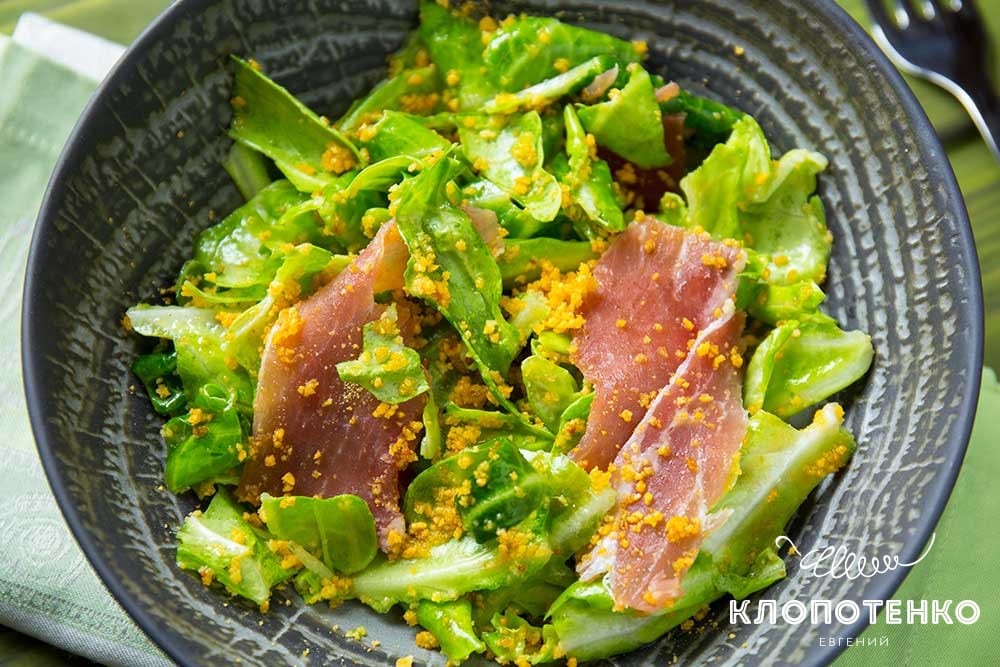 Начнём, конечно, с легкого салата, который наполнит тебя витаминами и не позволит переесть. Солоноватое тонкое мясо с сухарями сделает вкус необычным, а блюдо еще более питательным.