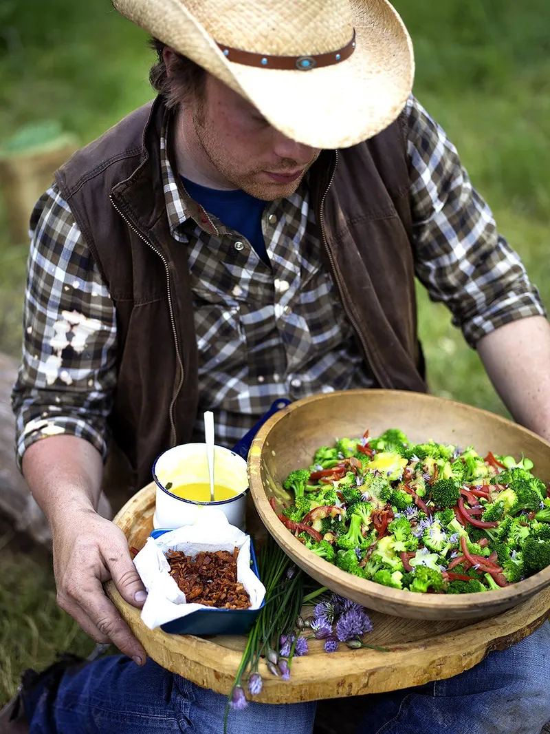 Джейми Оливер рассказывает, что создал рецепт этого салата после разговора с пастушкой. Женщина сказала ему, что мужчины не очень любят есть овощи. Это вдохновило повара изменить обычный салат из брокколи.