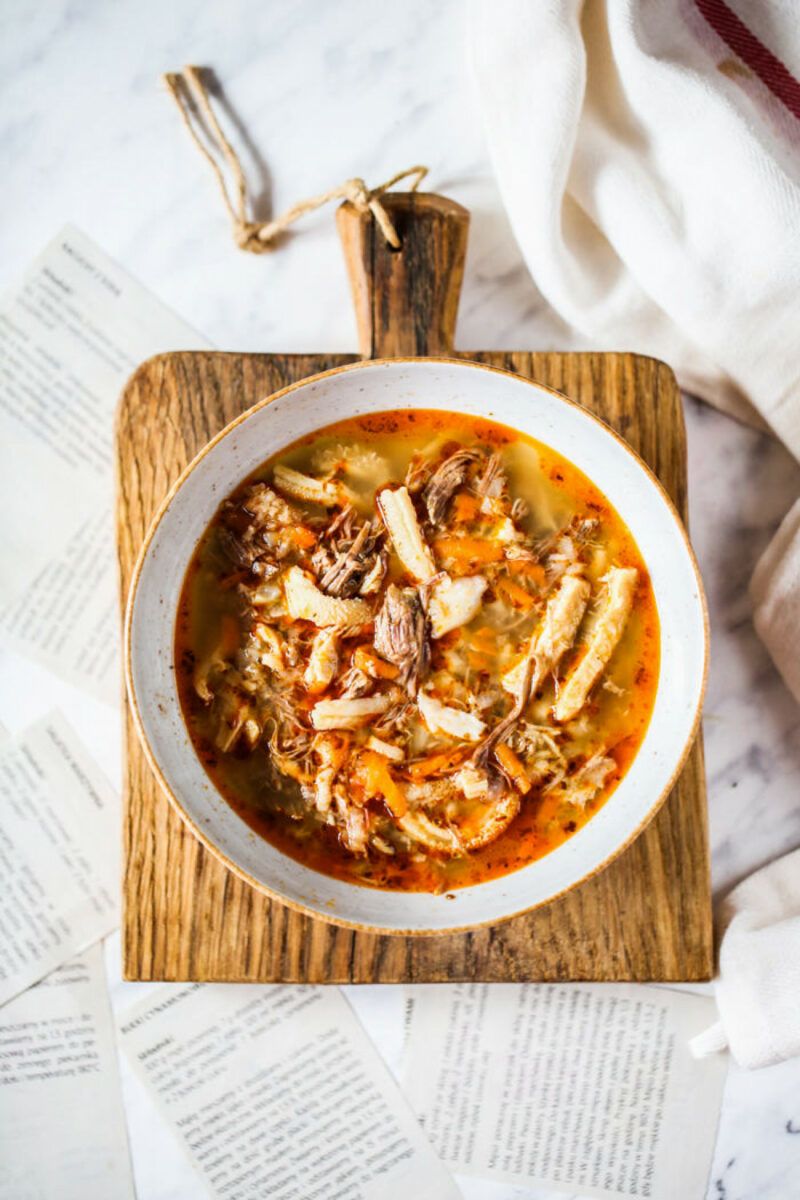 - В іншій каструлі скип’яти бульйон, поклади туди хляки, зменш вогонь до мінімуму та вари дві-три години, аж поки м’ясо не стане м’яким.
