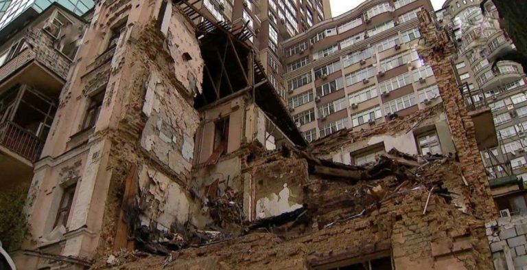 Нам передают по радиостанции немедленно покинуть кровлю здания, мы спускаемся и уже на ступеньках, когда мы спускались, произошел прилет в дом возле нас.