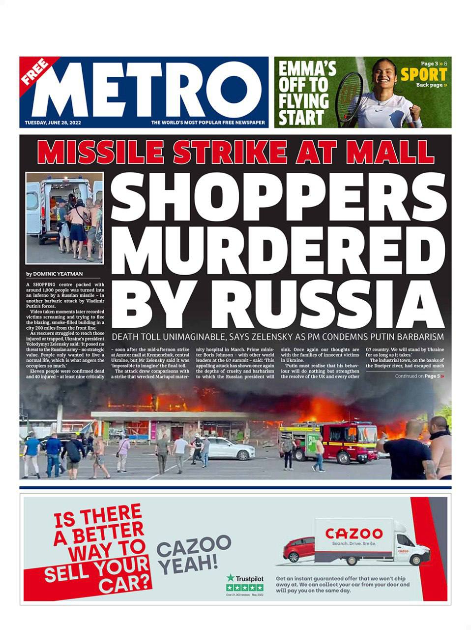 Реакция мировых СМИ на удар России по ТРЦ в Кременчуге