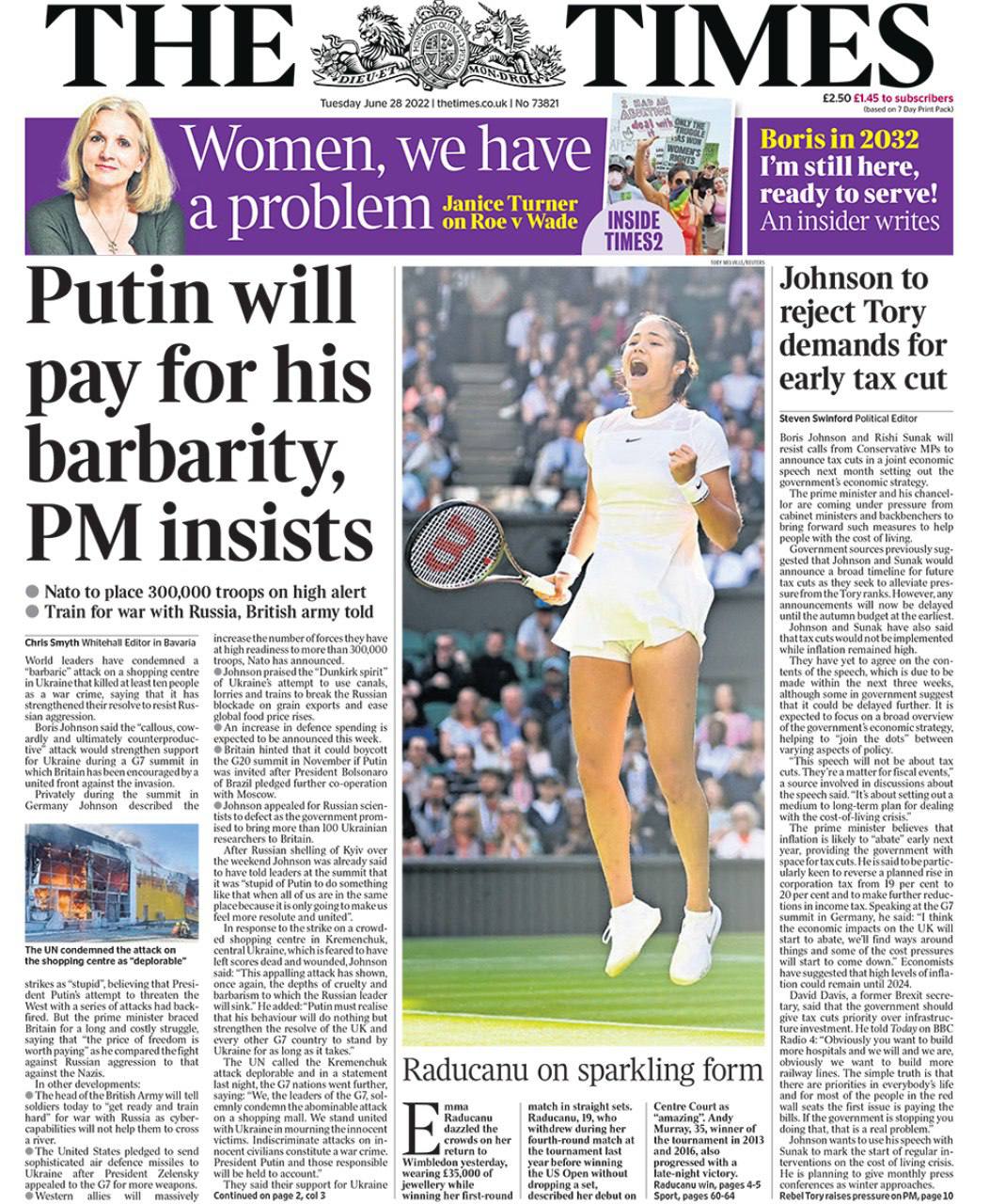 Премьер-министр Великобритании Борис Джонсон во время встречи лидеров Группы семи подчеркнул, что это ужасное нападение “в очередной раз показало масштаб жестокости и варварства” Владимира Путина.