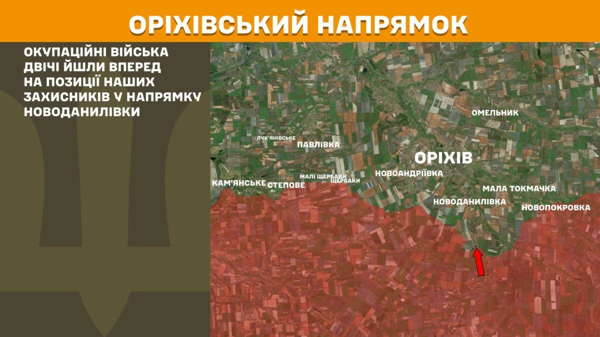На Ореховском направлении оккупационные войска дважды шли вперед на позиции наших защитников в направлении Новоданиловки.