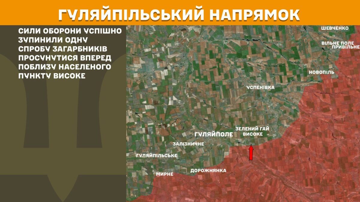 На Гуляйпольском направлении Силы обороны успешно остановили одну попытку захватчиков продвинуться вперед вблизи населенного пункта Высокое.