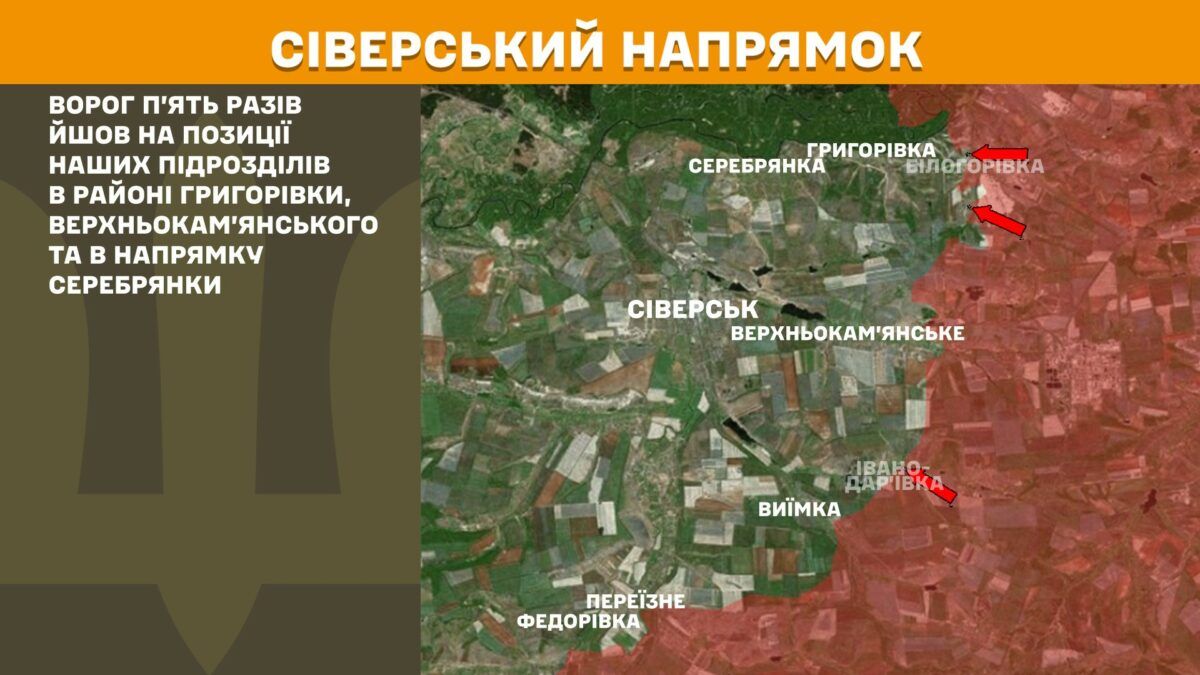 Враг пять раз шёл на позиции в районе Григоровки, Верхнекаменского и в направлении Серебрянки.