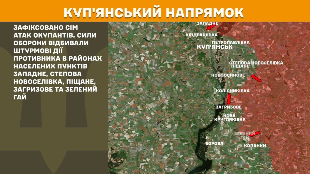 Зафиксировано 7 атак оккупантов, силы обороны отражали штурмовые действия в районах Западного, Степовой Новосёловки, Песчаного, Загрызово и Зелёного Гая.