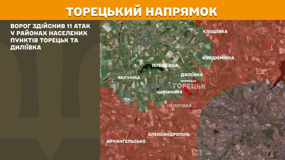 У районах Торецька та Диліївки загарбники здійснили 11 спроб наступу.