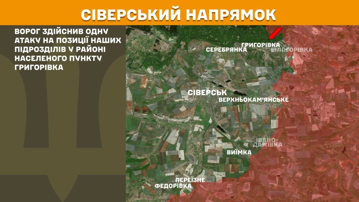 На Северском направлении РФ совершила одну атаку в районе населённого пункта Григоровка.