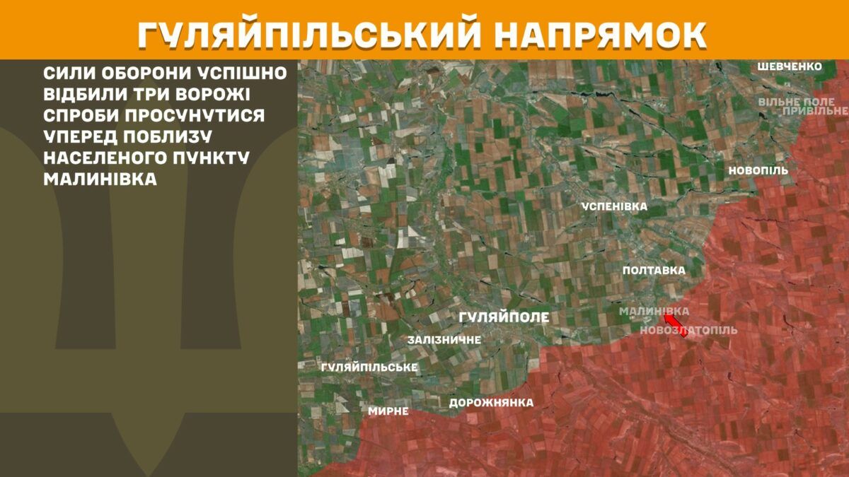 На Гуляйпольском направлении успешно отразили три вражеских попытки продвинуться вблизи населенного пункта Малиновка.