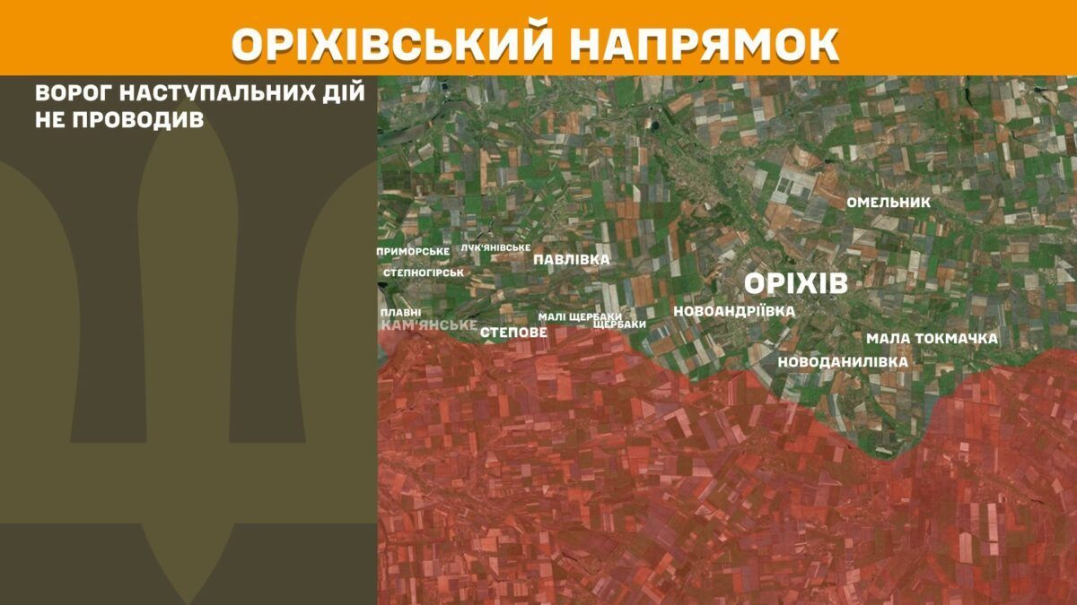 На Гуляйпольском, Ореховском и Приднепровском направлениях враг наступательных действий не проводил.