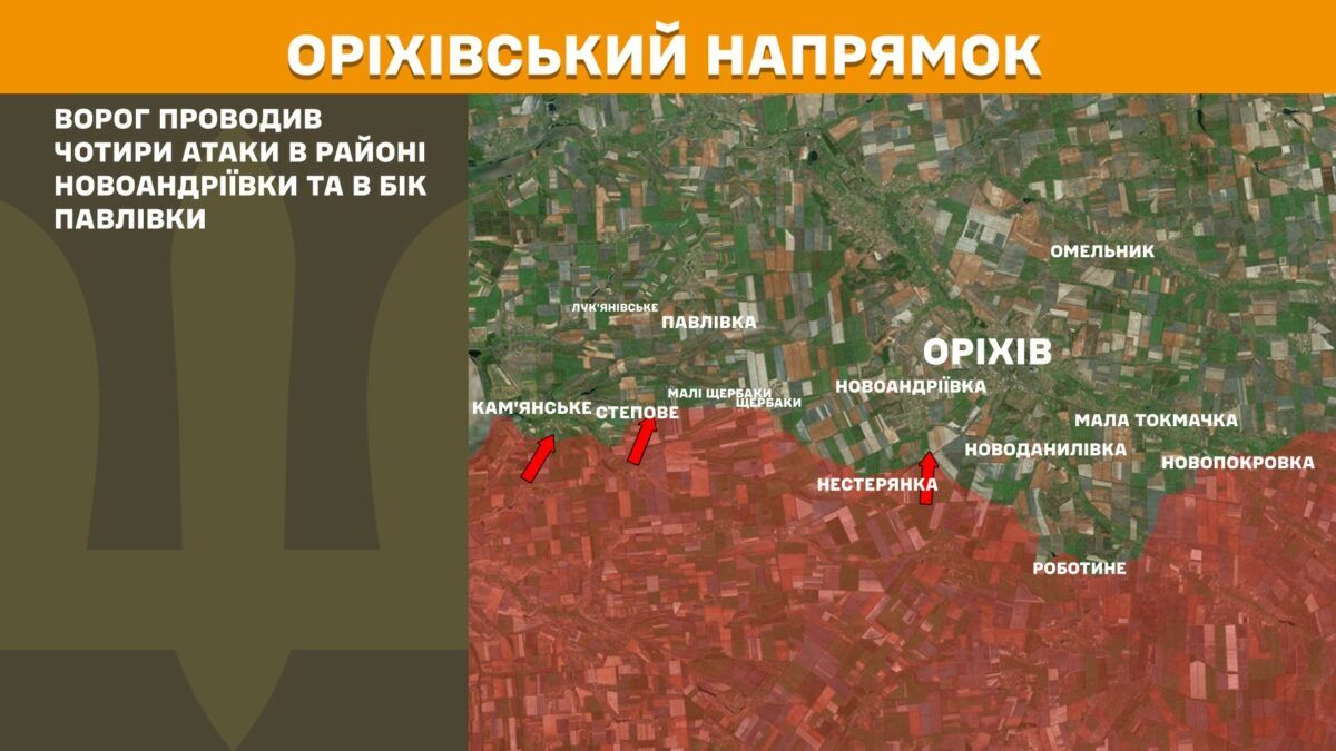 В Ореховском направлении сегодня враг проводил четыре атаки в районе Новоандреевки и в сторону Павловки.