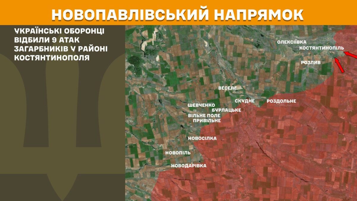 На Новопавловском направлении украинские защитники отбили девять атак захватчиков в районе Константинополя.