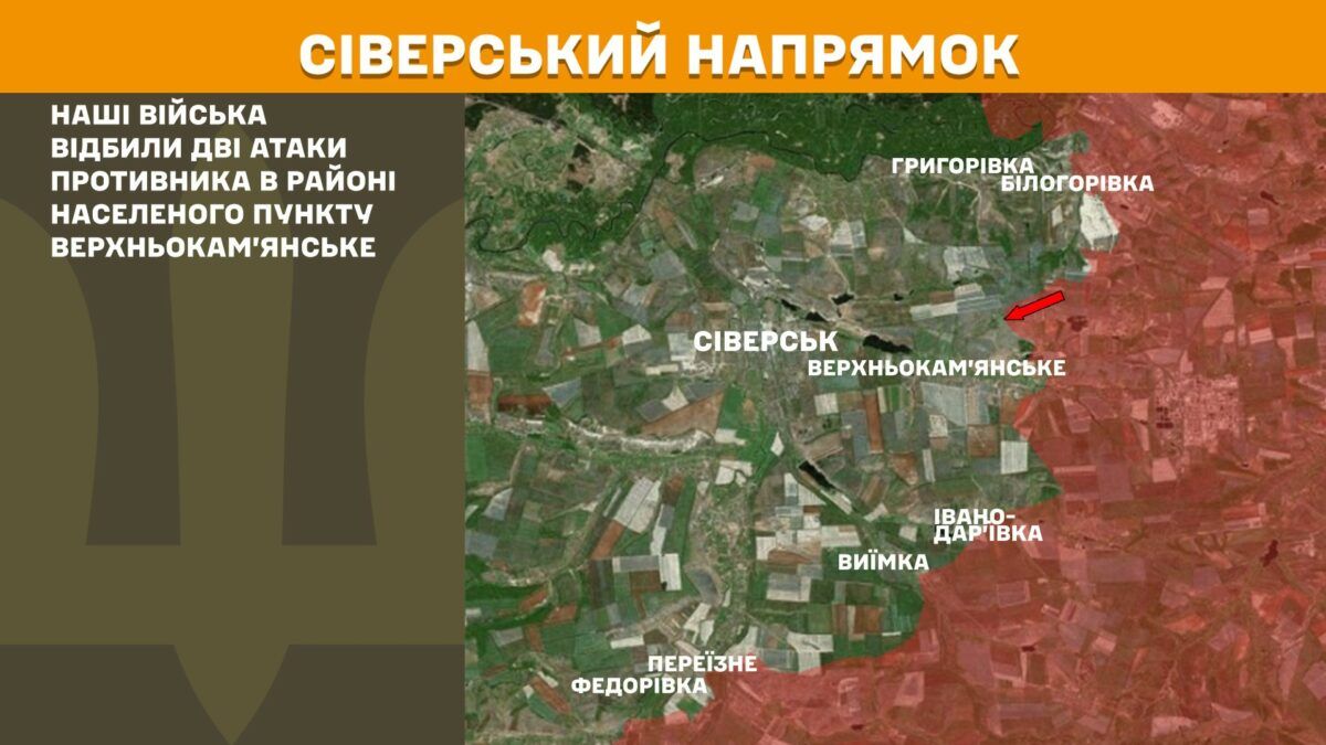 На Северском направлении наши войска отразили две атаки противника в районе населенного пункта Верхнекаменское.