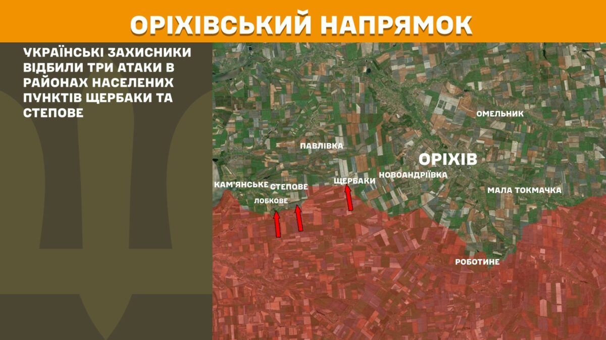 На Ореховском направлении украинские защитники отразили три атаки в районах населенных пунктов Щербаки и Степное.