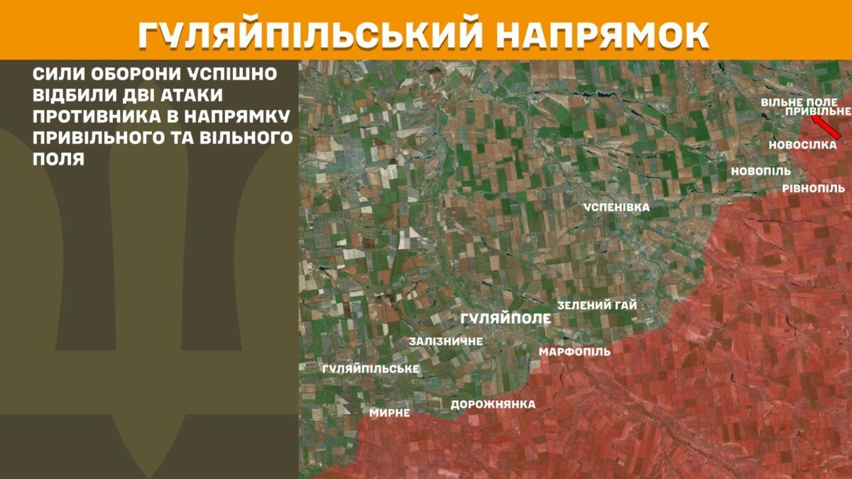 На Гуляйпольском направлении Силы обороны успешно отразили две атаки противника в направлении Привольного и Вольного Поля.