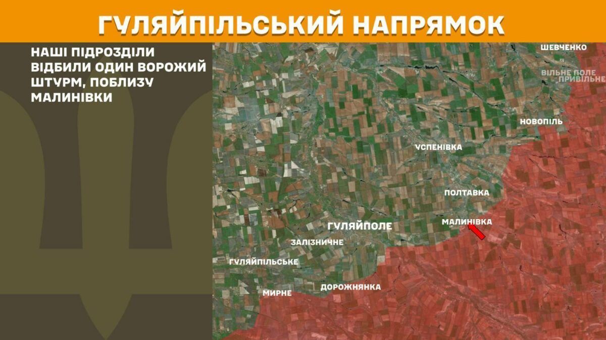 На Гуляйпольском направлении наши подразделения отразили один вражеский штурм, близ Малиновки.