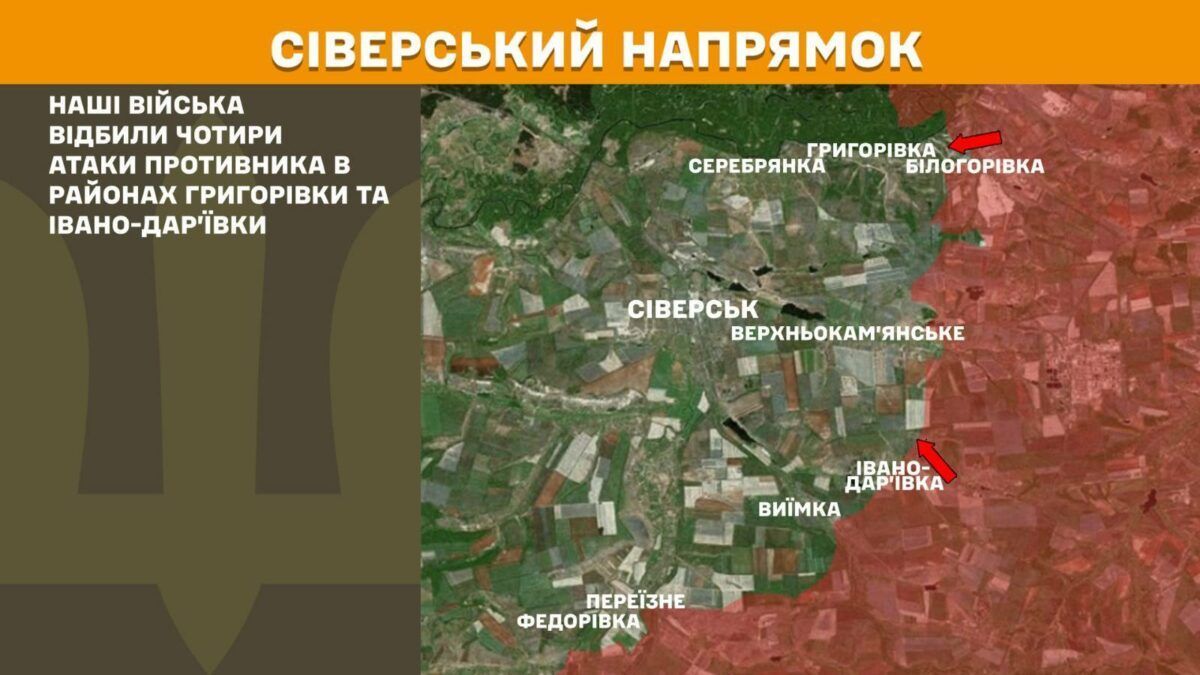 На Северском направлении наши войска отразили четыре атаки противника в районах Григоровки и Ивано-Дарьевки.
