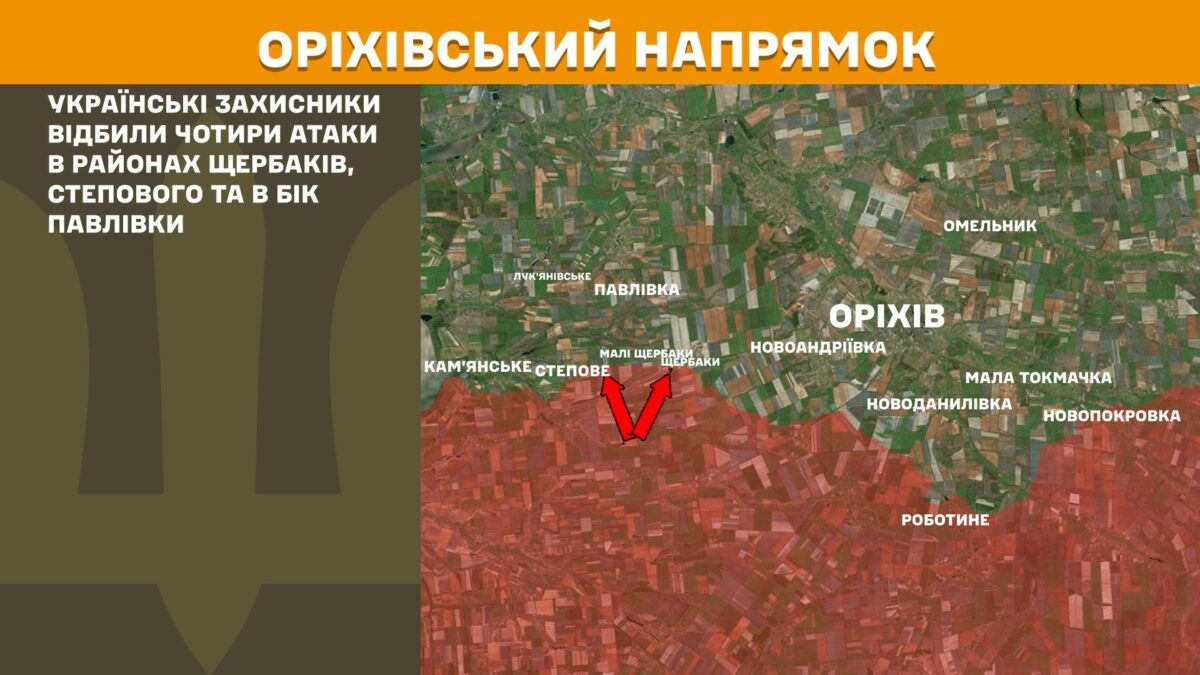 На Ореховском направлении отразили четыре атаки в районах Щербаков, Степного и в сторону Павловки.
