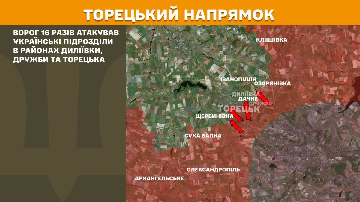 На Торецком направлении враг 16 раз атаковал в районах Дылеевки, Дружбы и Торецкая.