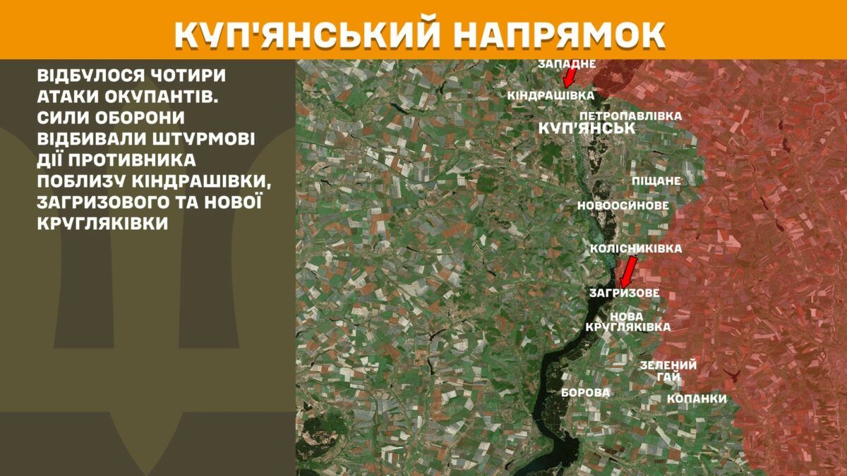 На Купянском направлении произошло четыре атаки, отражены штурмовые действия вблизи Кондрашовки, Загрызового и Новой Кругляковки.