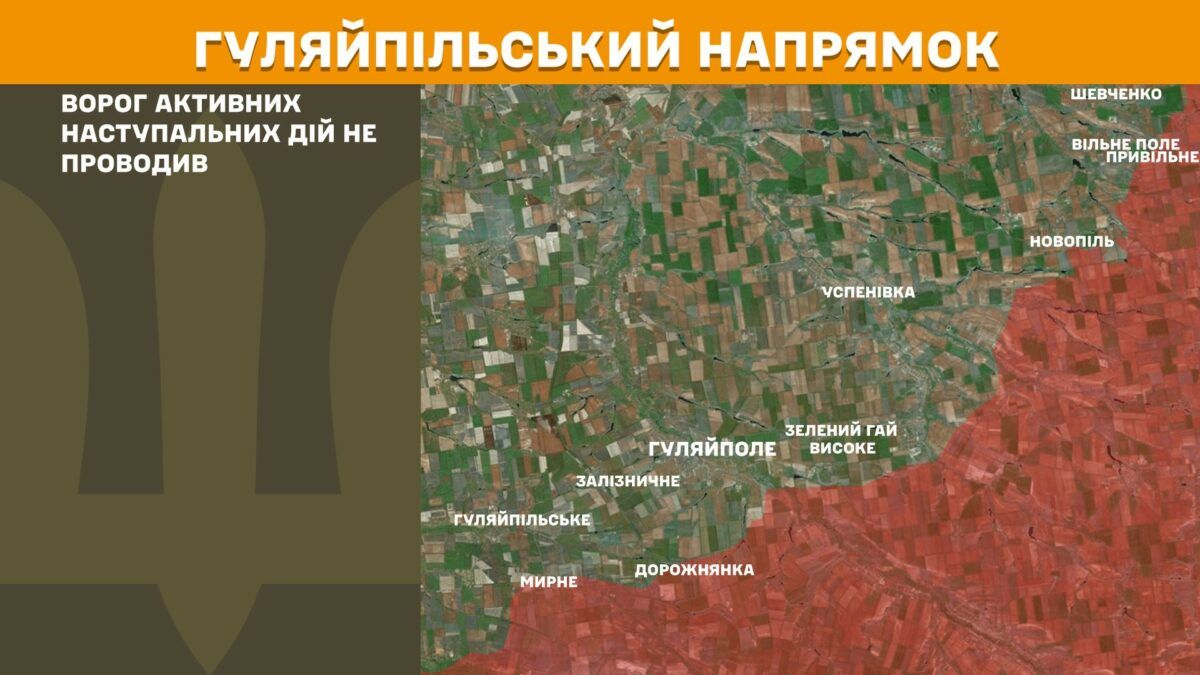 На Северском, Гуляйпольском и Приднепровском направлениях враг активных наступательных действий не проводил.
