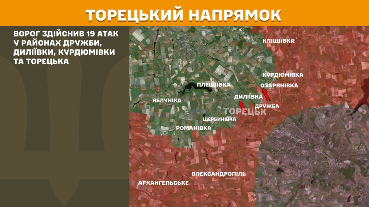 На Торецком направлении враг совершил 19 атак в районах Дружбы, Дилиевки, Курдюмовки и Торецка.