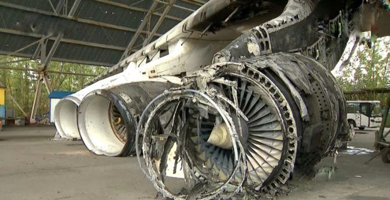 Уцелела хвостовая часть самолета, часть агрегатов шасси, стоек, колес — все это может быть использовано в дальнейшем. Часть систем тоже уцелела. Двигатели, возможно, также удастся отремонтировать.